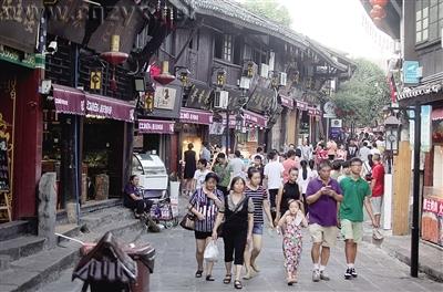 磁器口古镇每天都人来人往,节假日期间更是平均每天接待游客近10万人次。