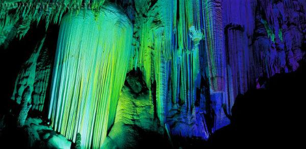随着镜头的切换,一座斑斓辉煌的地下艺术宫殿展现在我们眼前,芙蓉洞里生长发育着70余种岩溶洞穴沉积物,与美国的“猛犸洞”、法国的“克拉姆斯洞”并称世界三大洞穴。这里的钟乳石以平均100年1厘米的速度执着生长,“人们常说水滴石穿,但这里偏偏就是水滴石生” 主持人以解说的形式将地平面下亿万年的艺术故事娓娓道来。