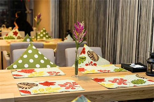 看到这样的就餐环境有没有感觉格外清新舒畅呢?喜欢自拍晒美食的童鞋一定会爱上这里的!包房全玻璃窗户,孔雀壁纸和蓝底白花布垫相互辉映,浸透 着宁静与淡雅。别致的吊灯,木质的桌椅散发着温暖的色调。