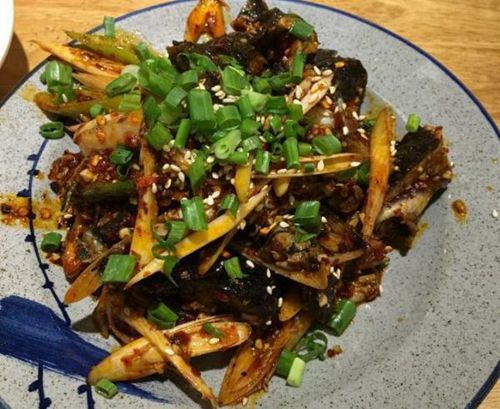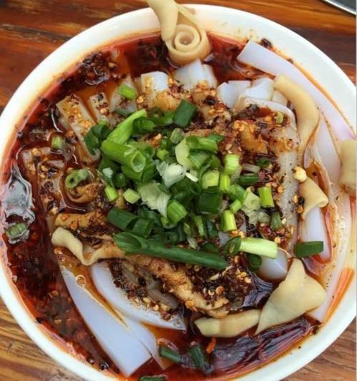 脆嫩的鸭肠摆在凉粉上面,再浇上特制的佐料,那味道叫一个霸道!关键是还很便宜,吃着一点都不心疼。