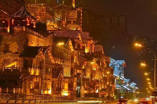 游走在洪崖洞那古朴的依山而建的吊脚楼群间,漫步在一条条写满记忆的老街上,感叹它可以在城市吊脚楼没落浪潮中,于传承中站了出来,重现“记忆中的老重庆”。
