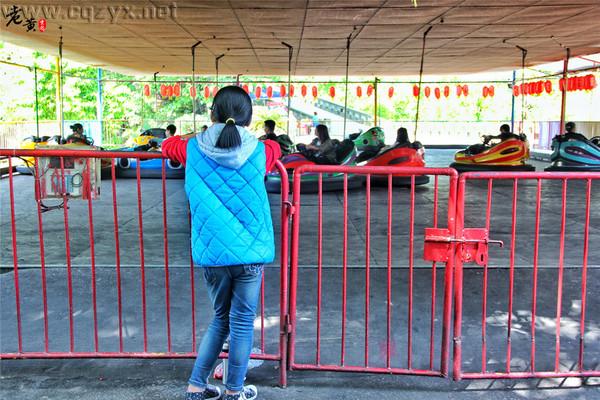 继续前行,来到碰碰车场,一辆停靠的碰碰车还有一个孤独的孩子。这项游戏本应该是群体性的,但刚好这两张画面却如此的独行特立。特别是这位孩子,也许她的眼里有着渴望,有着期许,有着冲动,但介于某种原因,她无法与这群人同乐。观其举动,独自一人,默而不语。和里面的嘻嘻哈哈形成鲜明的对比。我不去打破沙锅,寻根问底,仅就景论情,她的世界和本该的热闹,格格不入,是痛苦的隔离还是高明的脱俗,随缘!