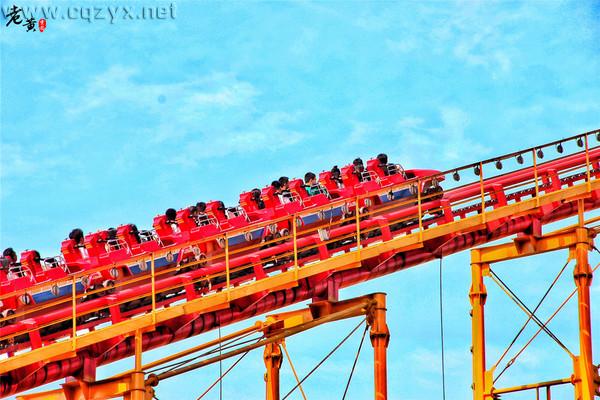 接下来,来到四环过山车,这条过山车道目前在重庆不算最刺激也不算最长,在乐和乐都已经有了十环过山车。但这条道却是承载岁月最多的。坐在车厢中,爬坡的过程是最纠结的,难捱的等待。然而对于摄影的我来说,这个时候却是美感十足的。试与天公比高,攀入云霄,展凌云之志!在我看来,能玩过山车的都是无惧的,至少是勇敢的!在这样的时刻,抓住他们的释放瞬间,这是最真实的,也是最难求的。
