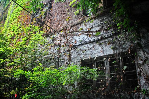 我们继续往前行,发现了如下的美景。这是一处旧工厂,由里面传来的机器声,我们推断这里应该还在作业。这工厂的房舍外墙,已经被爬山虎完全占据。在嫩绿的新叶与泛黄的旧枝搭配下,呈现给大家的是一处世外桃源般灵气的景象。悠悠之界,心之向往!