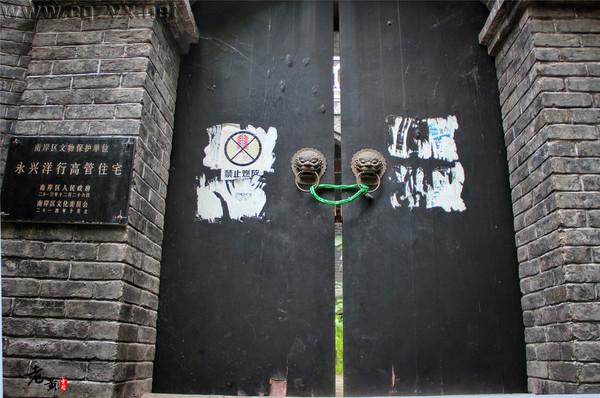 值得一提的是,在下浩老街上,有一处颇为雄伟的建筑,这就是被列为南岸文物保护单位的永兴洋行高管住宅。从这里的门关,还能隐约的感受到当初的气势。但由于老街的日渐衰落,这个文物单位也是紧锁门户,游客只能在门外欣赏她的壮丽形态了!