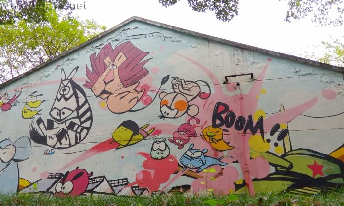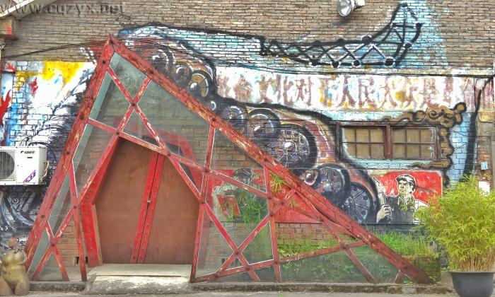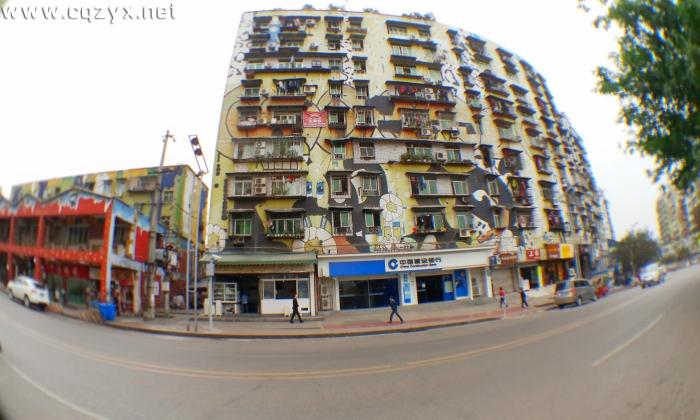 艺术街主要是以涂鸦的方式改造杨九路(黄桷坪铁路医院——501艺术库)1.25Km道路两旁陈旧的建筑,尽可能地减少对街道两旁建筑大的拆迁,以整改为主,以拆建为辅,同时保持黄桷坪本来的生态面貌和特有的艺术气息。