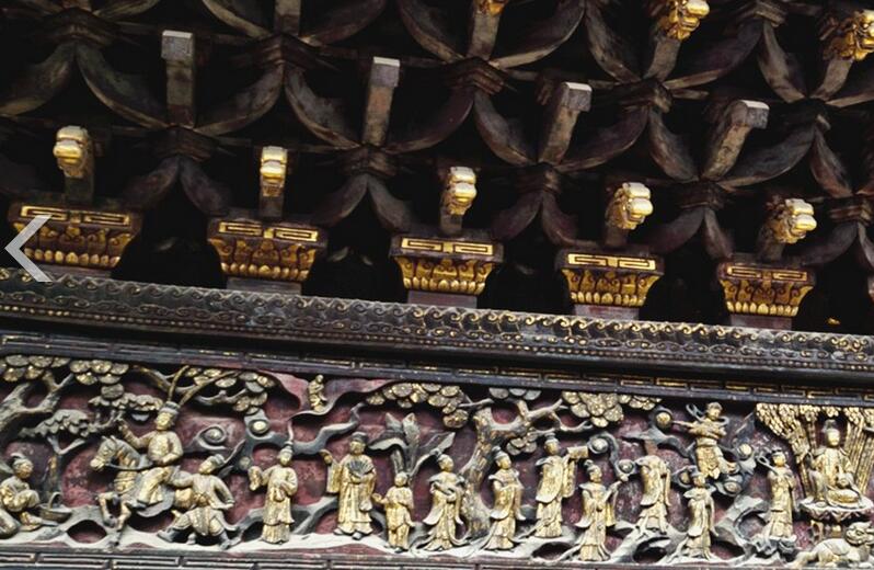 湖广会馆建筑浮雕镂雕十分精湛、栩栩如生,其题材主要为西游记、西厢记、封神榜和二十四孝等人物故事的图案,还有龙凤等各种动物图案及各种奇花异草等植物图案。新华网 黄俊辉摄 飞手 向进