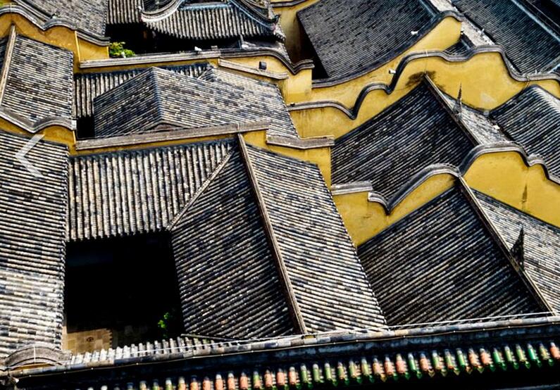 湖广会馆的围墙样式,是明清时期常见的黄色封火墙,以直线构图而呈阶梯状叠落,又称“码头墙”,是典型的江南建筑风格。这样的设计,使整个湖广会馆呈“L”形,从山坡上直冲而下,围墙联绵不断,造成异常震撼的视觉冲击。湖广会馆的屋顶造型华丽,配上琉璃瓦、精心雕刻的山花与大气的脊兽,组合协调大气,至今鎏光溢彩,成为一幅幅令人赏心悦目画面。新华网 黄俊辉摄 飞手 向进