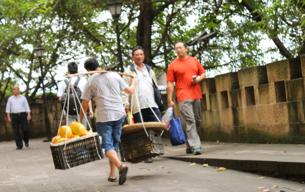 这也就不难理解这里为什么有这么多的棒棒了,因为这样的陡坡和山路根本不适合板车运货。一根竹棒,系上两根青色的尼龙绳,爬坡上坎,沿街揽活这便是他们的生活和工作。