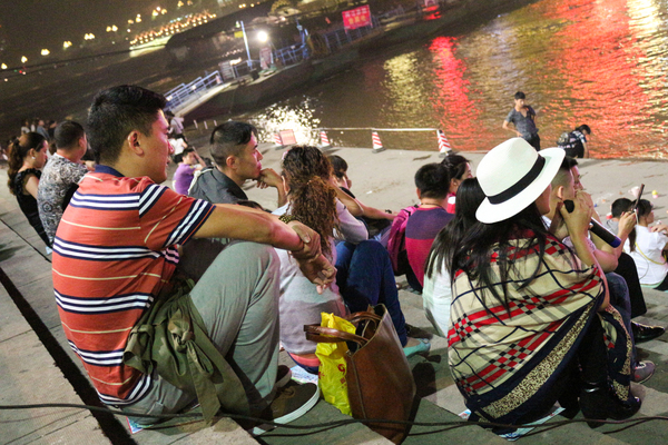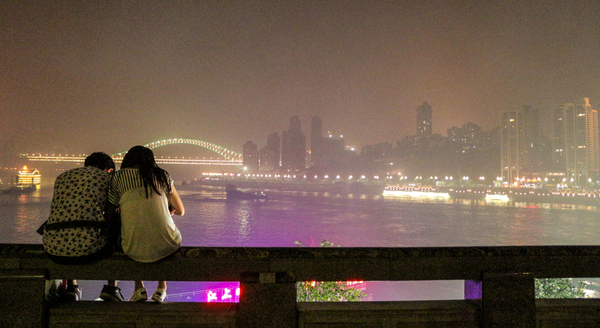 夜色下的朝天门是安静的,也是躁动的。而我最喜欢是在朝天门码头,一大群人坐在长江边,露天ktv的麦克在来往的游人中传递,江面上倒影着两岸高楼游轮的色彩,这些色彩仿佛也跟着躁动的旋律肆意的荡漾。