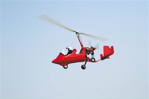 N1馆另一个博眼球的“重头戏”是自转旋翼飞机展。据介绍,自转旋翼飞机虽然看上去和普通直升机较为相似,但其机翼工作原理是依靠飞行时相对气流的吹动和自身惯性作用,就像一个大大的风车。