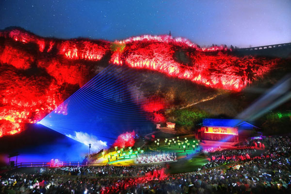 《印象·武隆》恢弘壮阔的演出画面。