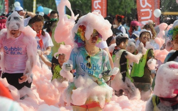 总共12台大型泡泡制造机将不间断制造大量的彩色泡泡,参赛者可以在满天飞舞的泡泡世界中玩乐奔跑。
