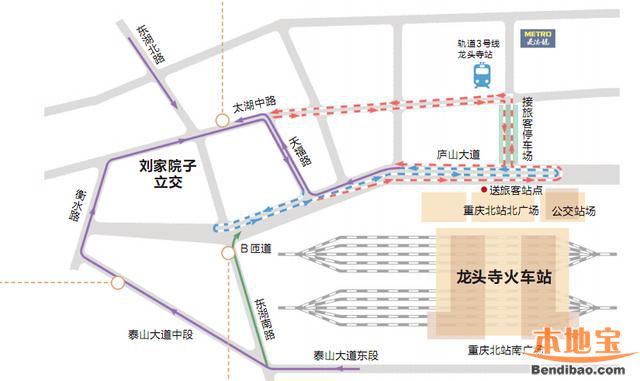 乘客乘坐轨道交通3号线到重庆北站北广场和龙头寺汽车北站,依然要在龙头寺站下车。