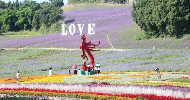 花谷保留了山体原有的形态以及走势,打造一个更具层次的美丽花园,成为重庆的“普罗旺斯”,把花海和青山绿水相融,打造水天一色、万颜嵌中的自然美景。
